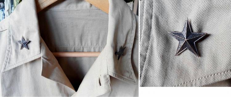CAMICIA REGOLAMENTARE ESTIVA IN COTONE DA BRIGADIERE GENERALE DEI PARACADUTISTI. STELLETTE REGOLAMENTARI II GM. TROVATA CON FOULARD, GIACCA, PANTALONI, BERRETTO, STIVALETTI. ETC. CONDIZIONI OTTIME.