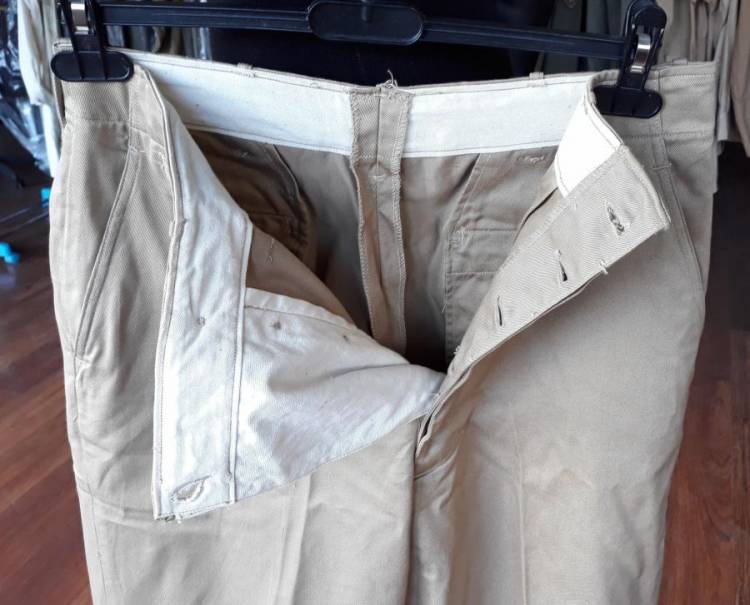 PANTALONI ´CHINOS´ ESTIVI IN COTONE KACKI PER IL MANICHINO DA BRIGADIERE GENERALE PARACADUTISTI. CONDIZIONI ECCELLENTI.
