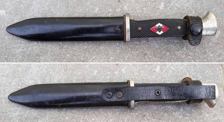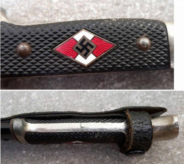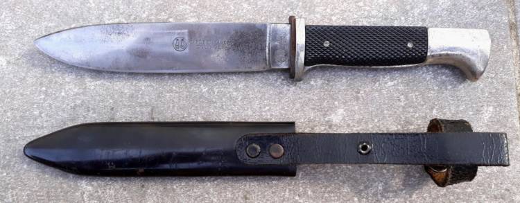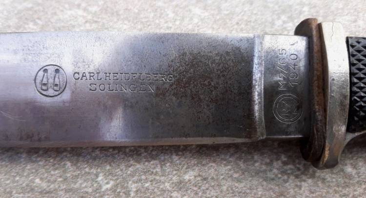 COLTELLO DELLA HJ SENZA MOTTO DI I TIPO CON LOGO FABBRICANTE E MARCHIO DI ISPEZIONE (CARLHEIDFLBERG – Solingen, RZM 7/65 1940). CONDIZIONI MOLTO BUONE.