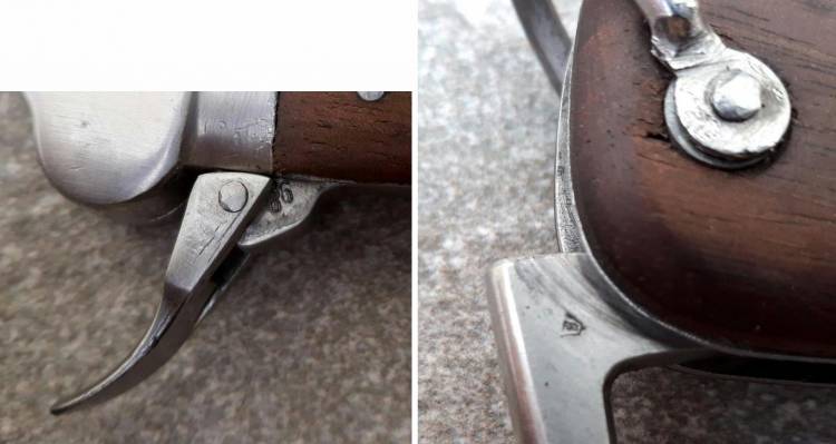 ´Flieger Kappmesser´ di I Tipo (non smontabile) in dotazione ai Paracadutisti tedeschi. Marcato sulla lama ´Paul Weyrsberg & Co. – Solingen´ Rostfrey. Punzonato con LaA ´5´ alla base del ´chiodo´. Condizioni molto buone.
