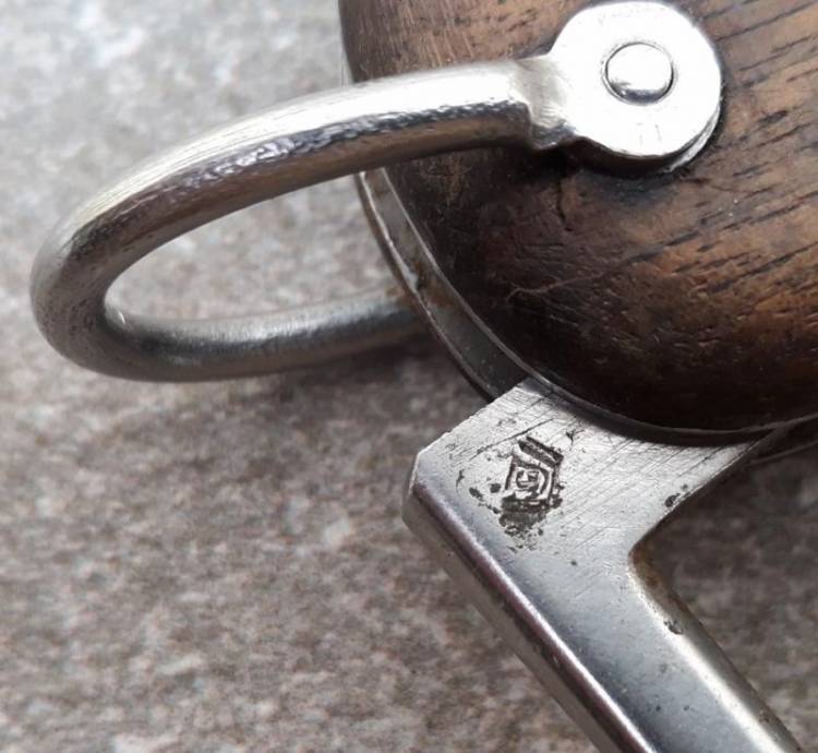 Incise le iniziali ´KP´ del paracadutista su una delle guancette in legno.