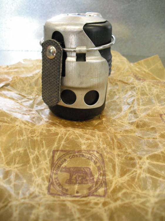 BOMBA A MANO ITALIANA S.R.C.M. (Societa´ Italiana Costruzioni Meccaniche) mod.35. PRODOTTA UTILIZZANDO LE STESSE PARTI DEL MODELLO ORIGINALE BELLICO. TIPO USATO PER L´ADDESTRAMENTO PRATICO AL TIRO DALL´ESERCITO ITALIANO NEL DOPOGUERRA. CUFFIA MARCATA "S.E.T.A" (Spolettificio Esercito Torre Annunziata). CON CARTA ORIGINALE MARCATA CON LOGO DELLA DITTA S.R.C.M. INERTE. PARI AL NUOVO.