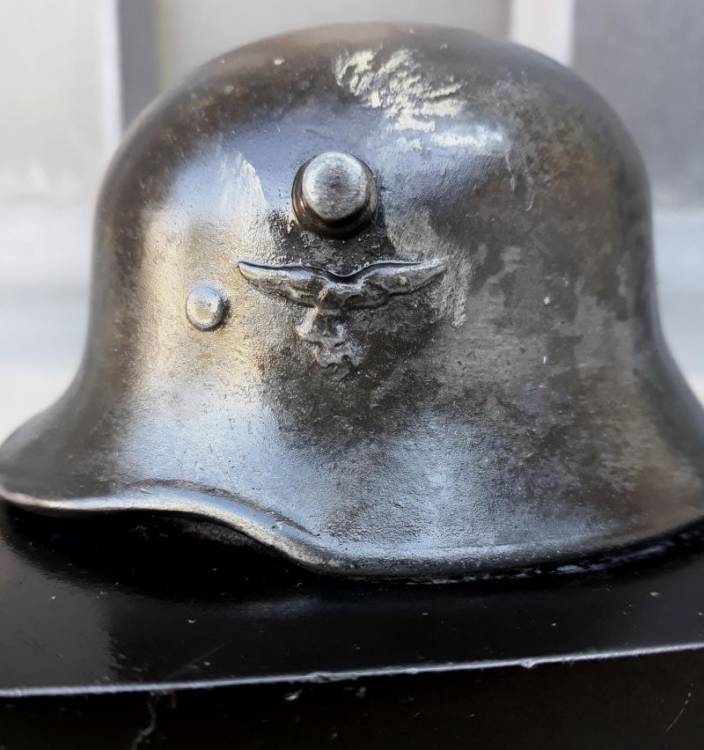 ELMO IN KRIEGSMETALL. BASAMENTO IN PIETRA. CONDIZIONI MOLTO BUONE.