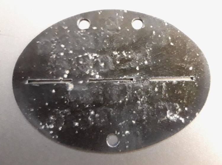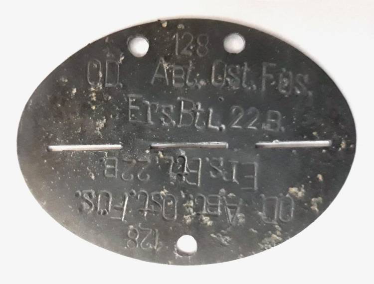 PIASTRINA DI RICONOSCIMENTO ALL. ‘128 O.D. ABt. Ost. Füs Ers, Btl. 22B’.