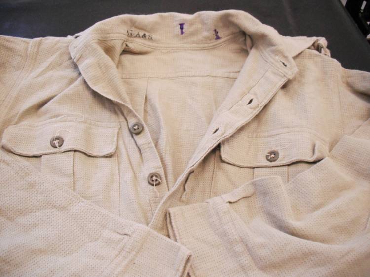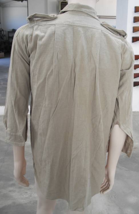 CAMICIA IN DERTEX, PER CLIMI CALDI, DELL´ESERCITO BRITANNICO. MODELLO 4 BOTTONI. COMPLETA. MARCATA, ALL´INTERNO DEL COLLETTO, CON TIMBRI DI ACCETTAZIONE, ATTAGLIAMENTO E FABBRICANTE "LA&S". I BOTTONI SONO TUTTI MARCATI CON LA SIGLA DEL PRODUTTORE. CONDIZIONI PARI AL NUOVO.