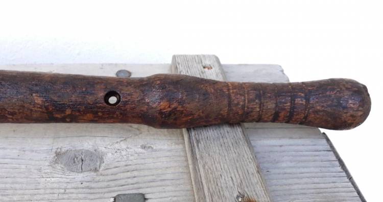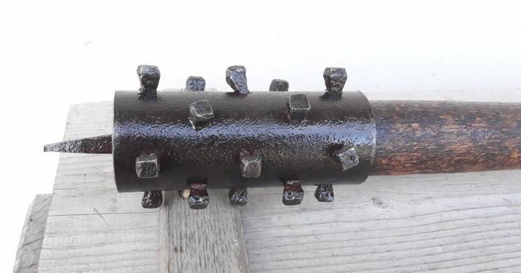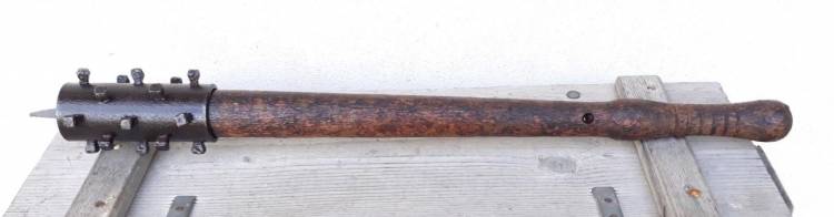 BELLA MAZZA FERRATA AUSTRIACA DELLA I G.M. A TESTA CILINDRICA CON 20 ´CHIODI´ E PUNTA IN TESTA. CONDIZIONI MOLTO BUONE.