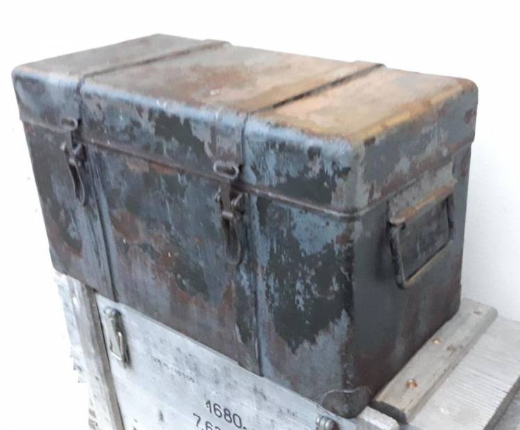 CASSETTA IN FERRO CON COLORAZIONE VERDE POI IMPIEGATA DALLA KM CON COLORAZIONE GRIGIO CHIARO. CONDIZIONI BUONE. COMPLETA DEI SUOI 5 SERBATOI IN CONDIZIONI ECCELLENTI.