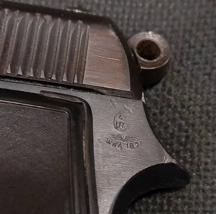 RARA PISTOLA BERETTA PRODOTTA PER LA WH NEL 1944. PUNZONI REGOLAMENTARI DI ACCETTAZIONE ITALIANA ´4°UT´ E TEDESCA ´WaA162´. CONDIZIONI MOLTO BUONE.