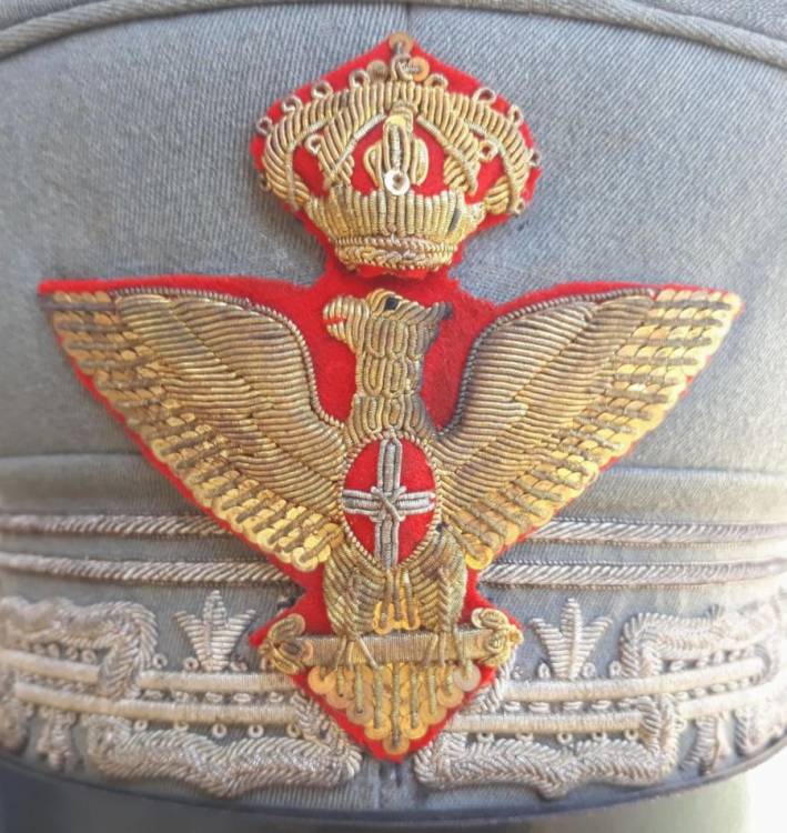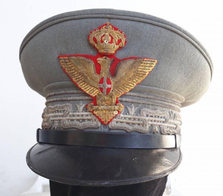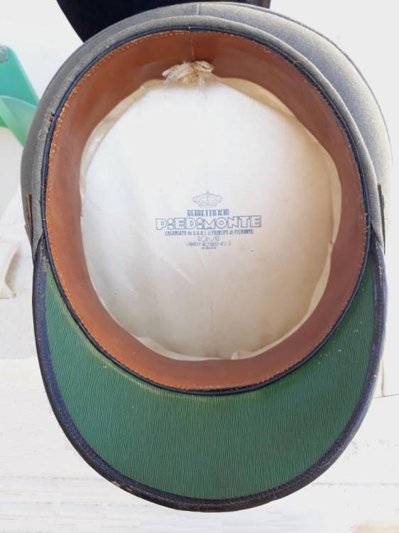 BELLISSIMO BERRETTO MOD.34 DA GENERALE DI CORPO D´ARMATA. NON FALSIFICABILE IN QUANTO LE GRECHE IN CANUTIGLIA SONO CUCITE DIRETTAMENTE SULLA STOFFA DEL CAPPELLO, NON RIPORTATE. PRODOTTO DAL BERRETTIFICIO ´PIEDIMONTE´ DI ROMA. CONDIZIONI ECCELLENTI.