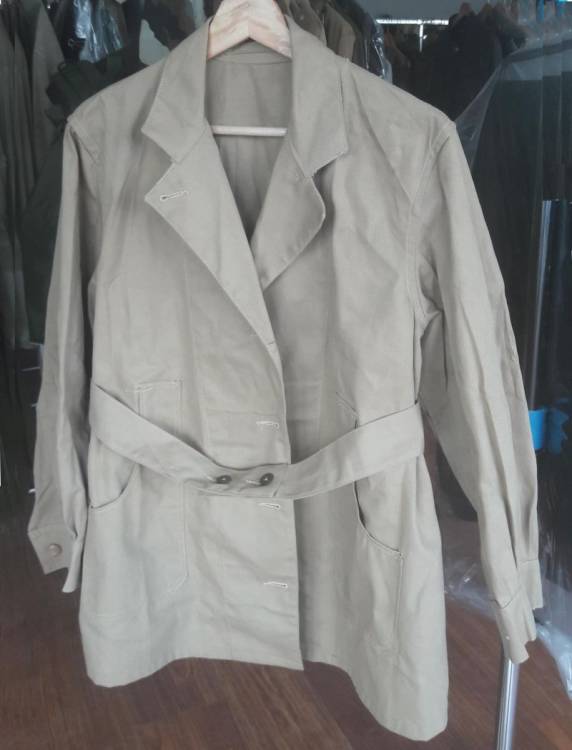 RARO IMPERMEABILE LE GGERO IN COTONE PER REPARTI FEMMINILI DELLA II GM. TARGHETTA INTERNA 1943.