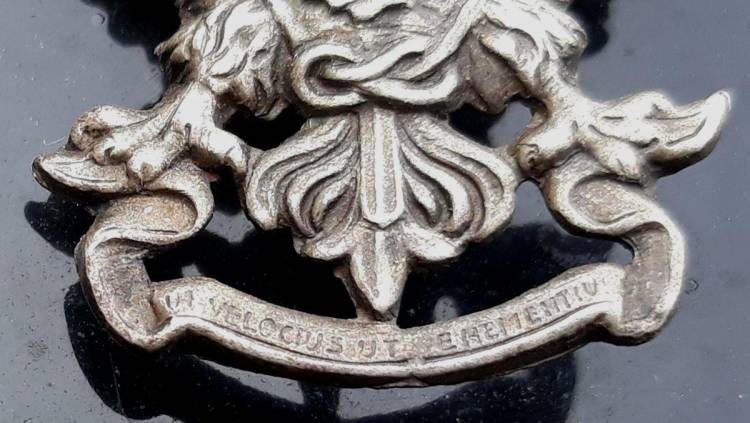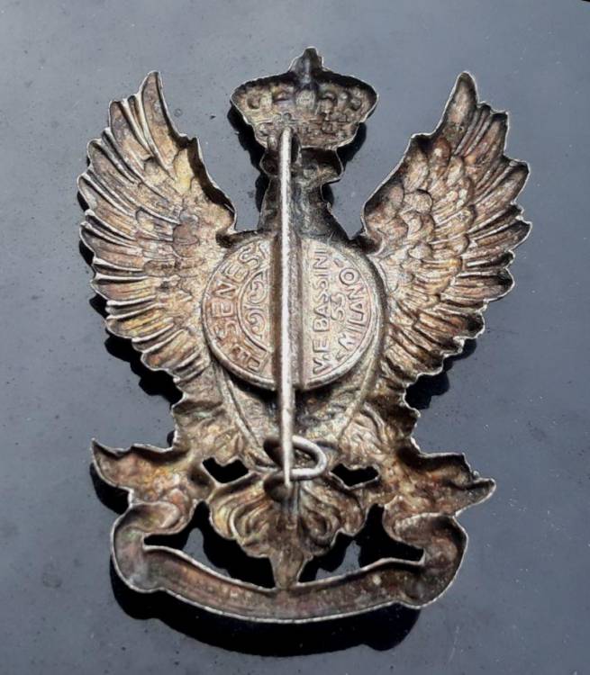 Rara spilla da guerra in lamina d´argento dell´ arma di cavalleria San Giorgio. San giorgio si trova dentro l´aquila coronata con scritto: "Ut Velocius Ut Vehementius". Nel retro i riferimenti del fabbricante: F.lli SENESI - Via E. Bassini 53 Milano.