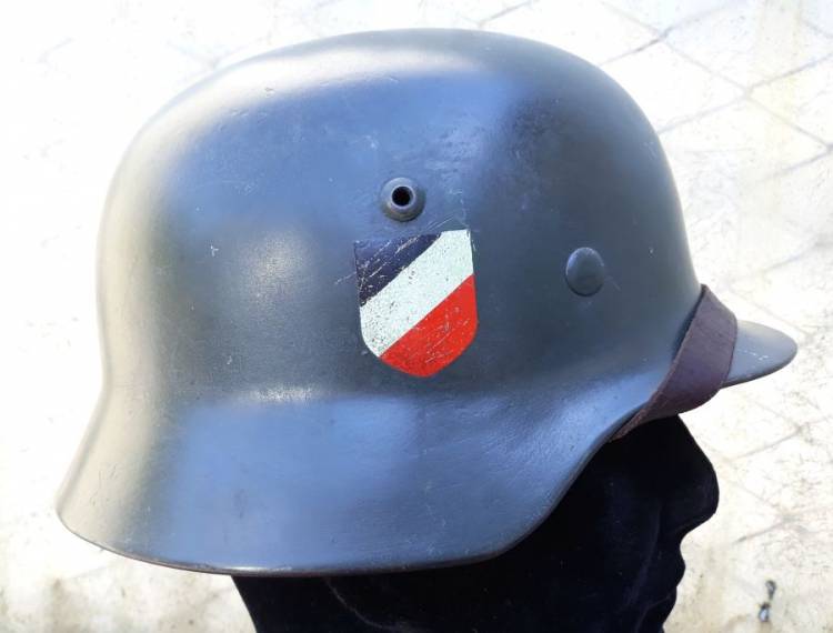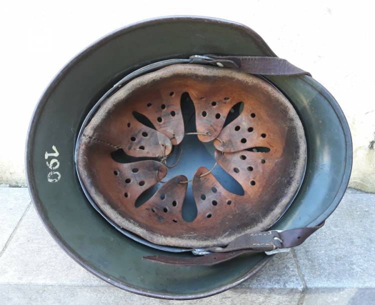 ELMETTO M.35 HEER (ESERCITO) BIDECAL DI PRIMO TIPO IN COLORAZIONE VERDE MELA. COMPLETO DI INTERNO E SOGGOLO. MARCHI REGOLAMENTARI NELLA FALDA.