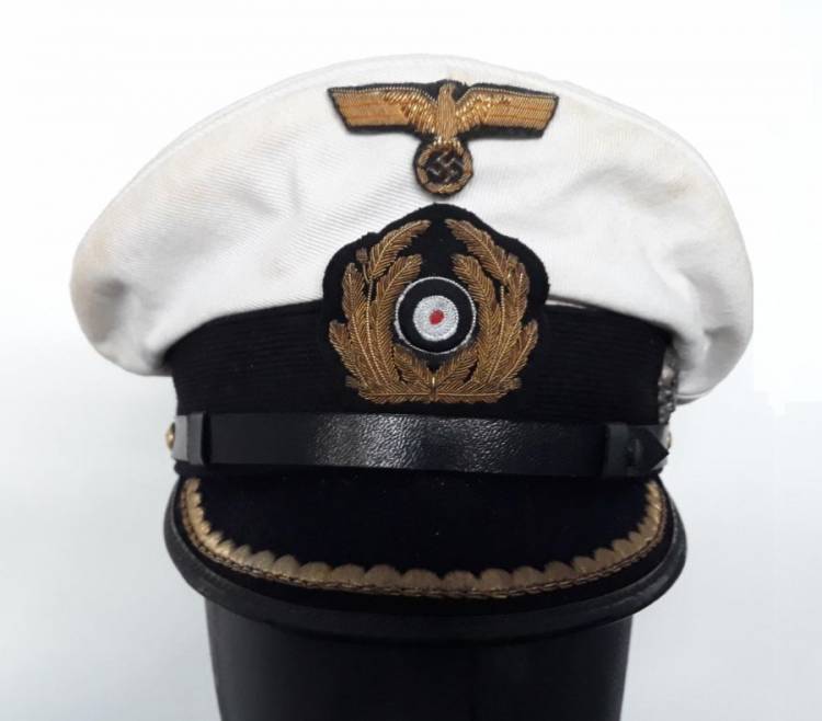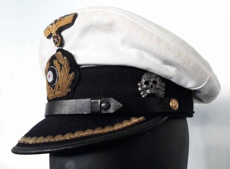 SCHIRMUTZE BIANCO ESTIVO DELLA KM APPARTENUTO AL COMANDANTE DELL´U-BOOT U-244 Type VII-C (10 Aprile – 14 Maggio 1945). SUL LATO SINISTRO PORTA IL TOTENKOPF IN METALLO, SIMBOLO DEL U-244.