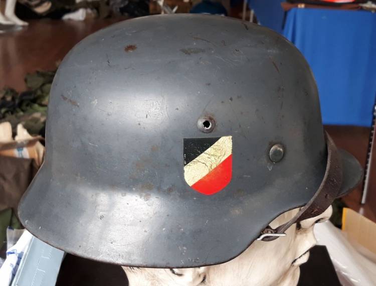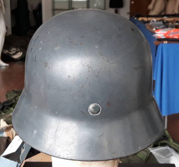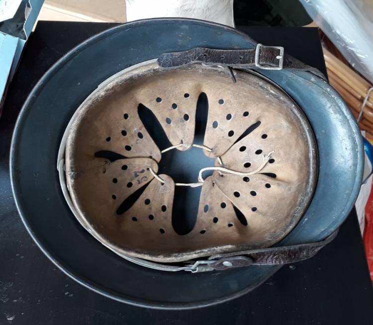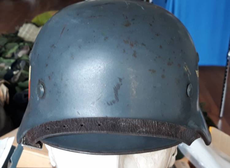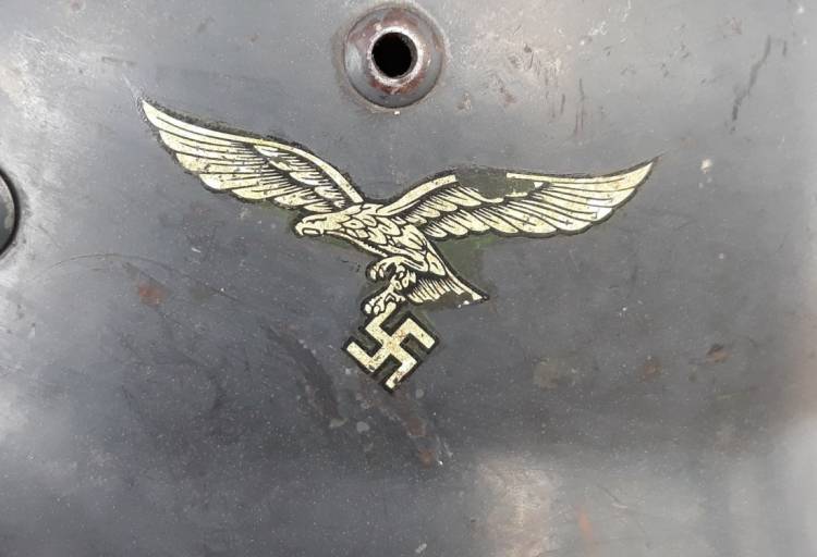 BELLISSIMO ELMETTO TEDESCO DELLA LW CON DOPPIA DECAL. VERNICE BLU CHIARO DI PRIMO TIPO. AQUILA DI 2° TIPO. LINER E SOGGOLO IN ALLUMINIO DI 1° TIPO.