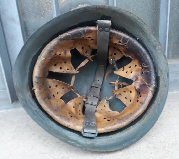 RARO ELMETTO DELLA GNR MOD.33 CON FREGIO FRONTALE NERO DI II TIPO VERNICIATO A MASCHERINA. CONDIZIONI MOLTO BUONE. COMPLETO DI IMBOTTITURA E SOGGOLO.