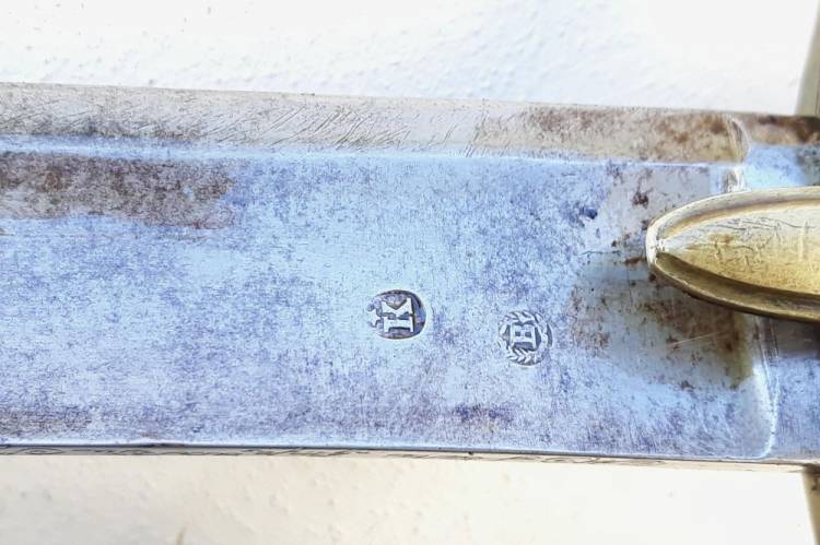 BUONISSIME CONDIZIONI. MAI TOCCATA, NESSUN RESTAURO. PUNZONE NELL´ELSA CON ´K e Stella´ E NELLA LAMA ´K e Stella e B´in cerchio di alloro´. SUL DORSO L´INCISIONE: ´MANIFATTURA IMPERIALE DI KLIMGENTHAL 1813´.