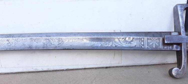 BELLA SCIABOLA MOD.55 CON INCISIONI ALL´ACIDO DI GRANDE QUALITA´ A MOTIVO DI TROFEI E FLORAMI.