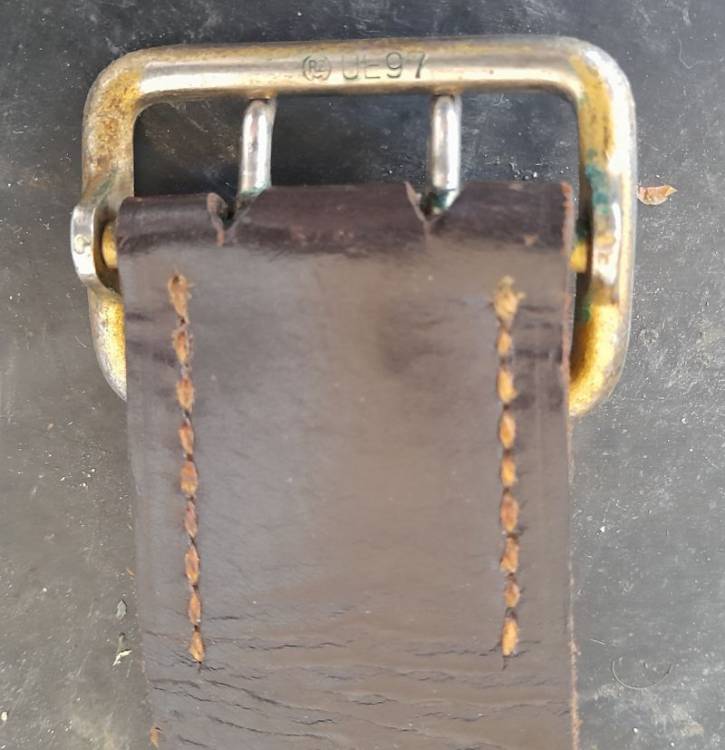 CINTURONE DA COMANDANTE DELLA NSDAP CON FIBBIA DORATA A DUE ARDIGLIONI. MARCATO "RZM - UE97".