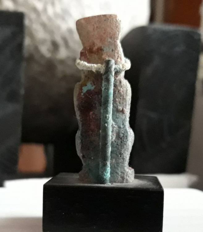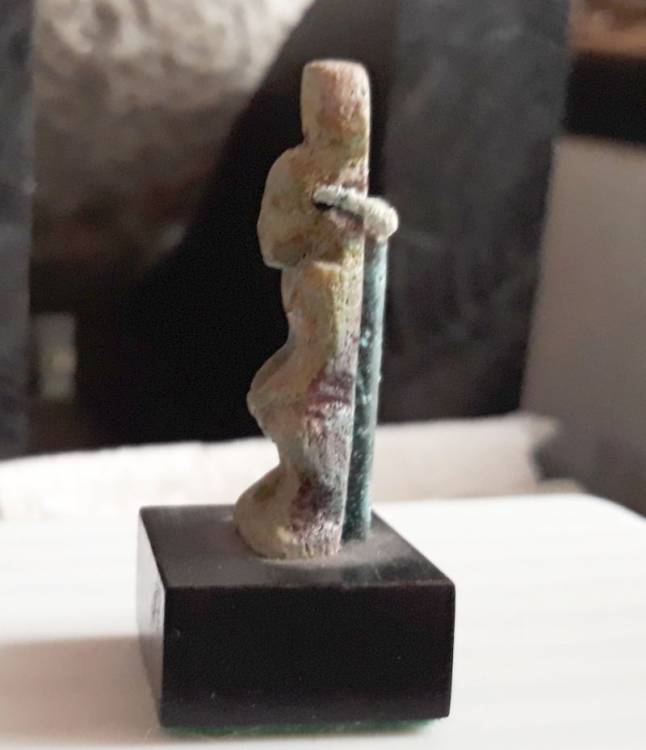 Divinità egizia in Faience verde oliva. VII sec. a.C. mm. 40x14 (011x).