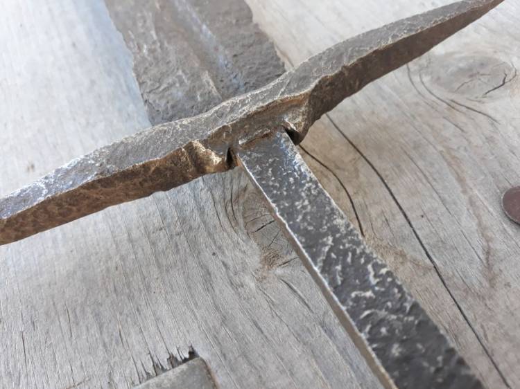RARA SPADA A CROCE CON ELSA DAI BRACCI TERMINANTI A CUSPIDE, ATTI A COLPIRE E PERFORARE LATERALMENTE ANCHE DI PUGNO.