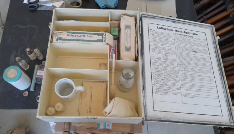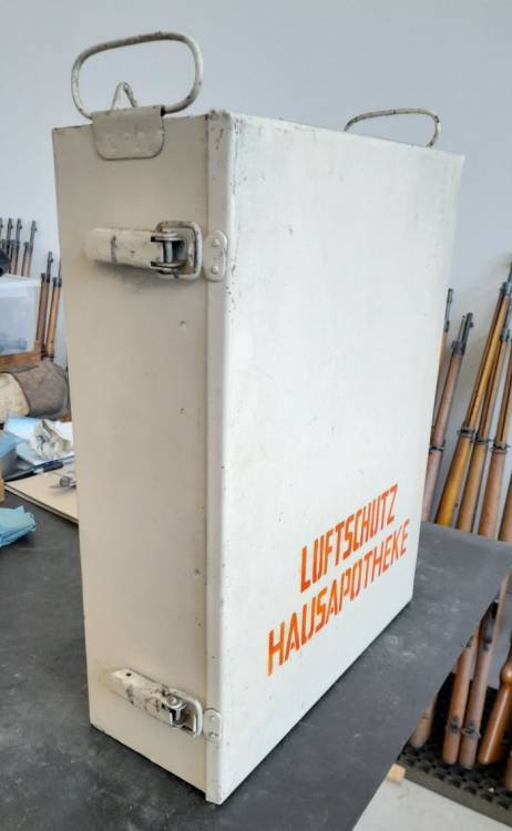 BELLA CASSETTA PORTAMEDICINALI IN METALLO VERNICIATO DI BIANCO, DELLA LUFTSCHUTZ.