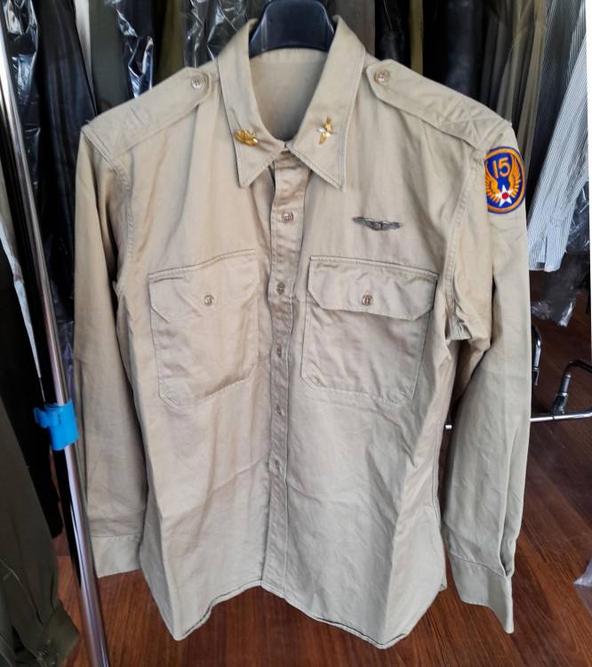 USAAF CAMICIA PILOTA ESTIVA MAGGIORE 15° AIR FORCE c./BREVETTO VOLO.