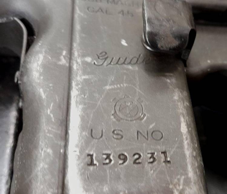BELLISSIMA PISTOLA MITRAGLIATRICE US M.3 CHIAMATA GREESE GUN (Ingrassatore) PER LA SUA FORMA PARTICOLARE. PRODOTTO DALLA ´US GUIDE LAMP´ (MARCATO). PROVVISTO DEL SUO SPENGIFIAMMA, ACCESSORIO DAVVERO RARO. CONDIZIONI PERFETTE. VECCHISSIMA INERTIZZZIONE: SCARRELLANTE, SCATTO, SMONTABILE. UNA RARITA´.