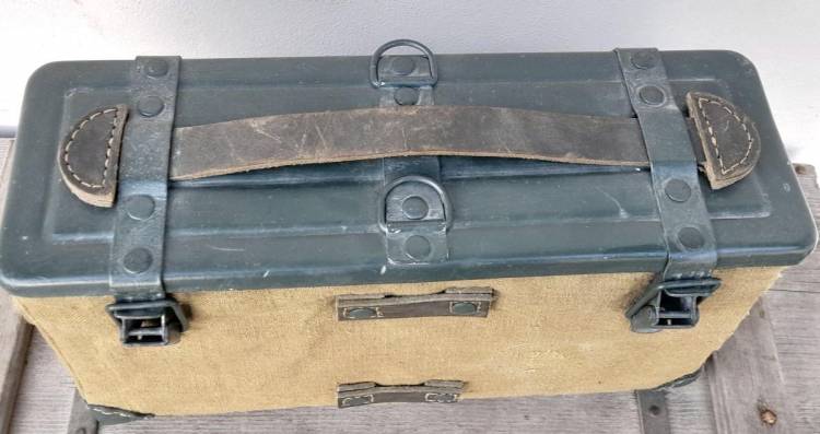 CASSETTA PORTAPIASTRINE SPALLEGGIABILE PER LA MITRAGLIATRICE BREDA 30. CONTIENE 16 PIASTRINE DELLA II GM E 320 COLPI IN CAL. 6,5x52.
