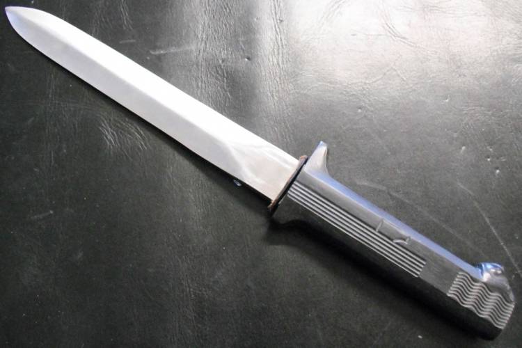 PUGNALE "TESTA DI LEONE" PER UFFICIALI DEL BATTAGLIONE "SAN MARCO" DELLA R.S.I. (Repubblica Sociale Italiana). MODELLO FUORI-ORDINANZA CON IMPUGNATURA IN EBANO ANZICHE´ IN BACHELITE NERA. PRIVO DI FODERO. IMPUGNATURA CON TERMINALE A FORMA DI TESTA DI LEONE STILIZZATA, FASCIO LITTORIO INCISO SU AMBO I LATI. UNO DEI PUGNALI ITALIANI PIU´ INTERSSANTI DAL PUNTO DI VISTA ARTISTICO, IN STILE MARCATAMENTE FUTURISTA. OTTIME CONDIZIONI.