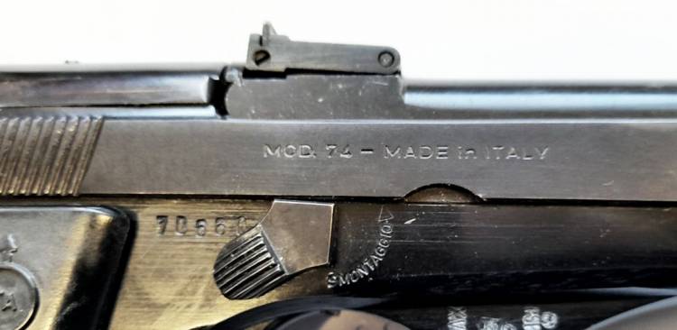RARA PISTOLA BERETTA Mod.74 CON I PUNZONI ISRAELIANI. USATA DAI SERVIZI SEGRETI ISRAELIANI E DA ALCUNI UFFICIALI DELLO TSAHAL. I PUNZONI, CHIARAMENTE NON IN VISTA, SONO SOTTO LA GUANCETTA DESTRA.
