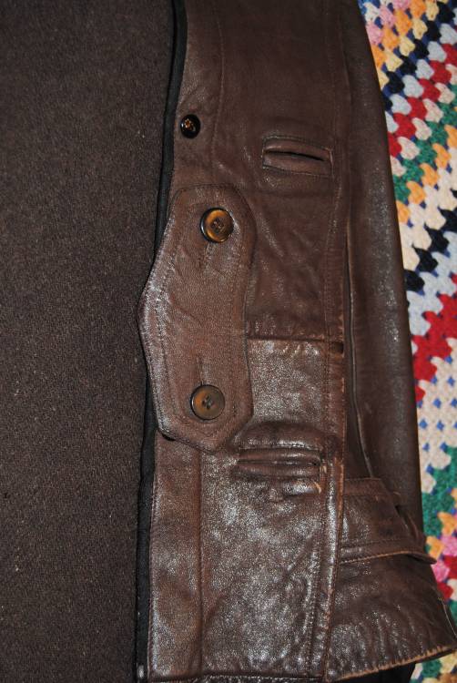BELLISSIMO GIACCONE IN PELLE MARRONE DA MOTOCICLISTA DELLA PAI (Polizia Africa Italiana). COMPLETA DEI DUE FASCETTI IN VERSIONE FUTURISTA DA BAVERO. CONDIZIONI ECCELLENTI.