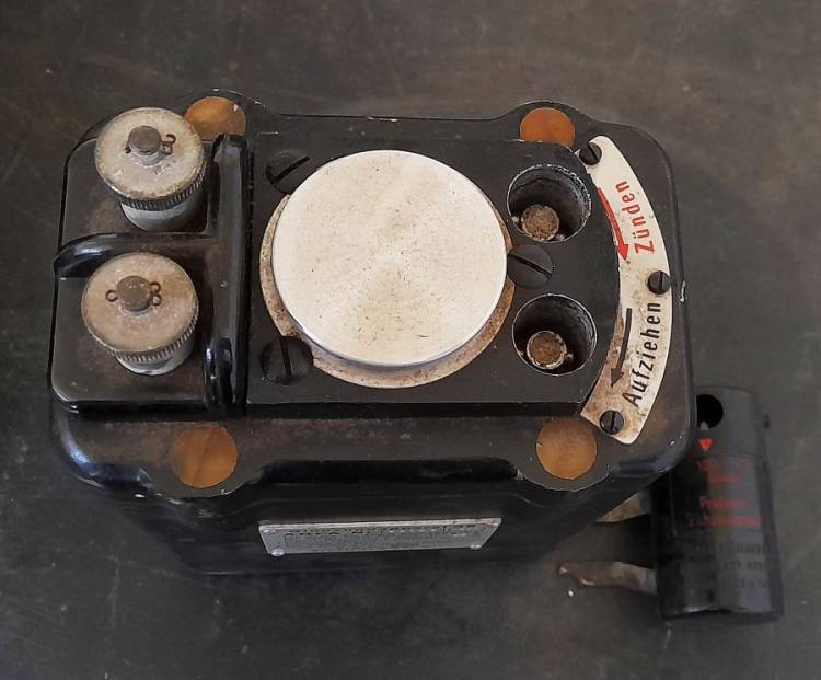 RARISSIMO ACCENDITORE PER ESPLOSIVI ´GLUKZUNDAPPARAT 39´ PRODOTTO DALLA ´gxy´ (Gebrüder Klinge, Lederwaren-Fabrik, Anton-Weckstr. 2-6, Dresden-Löbtau, Sachsen) NEL 1941.