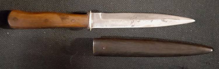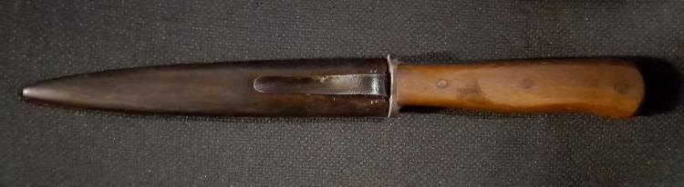 BEL COLTELLO DA COMBATTIMENTO PER TRUPPESPECIALI TEDESCHE DELLA II GM. E´ DELLA TIPOLOGIA ´TIGER´ CON FODERO AD UNA MOLLA DI FISSAGGIO PER LO STIVALE O LA GIACCA. CONDIZIONI ECCELLENTI.