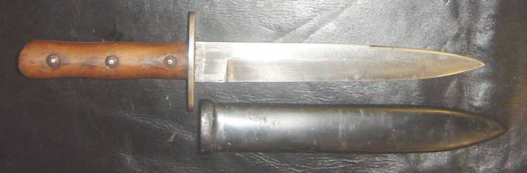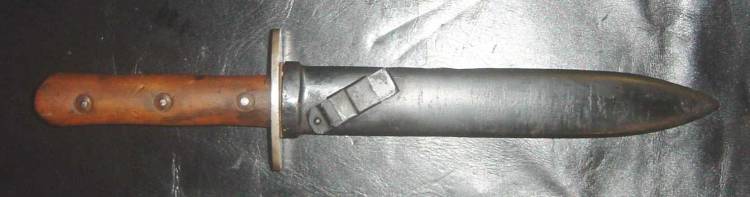 PUGNALE R.E.I. (Regio Esercito Italiano) M.38 PER SOTTUFFICIALI E TRUPPA. LARGAMENTE DIFFUSO TRA LE TRUPPE PARACADUTISTE. IMPUGNATURA IN LEGNO, IN DUE PARTI. COMPLETO DI FODERO ORIGINALE IN LAMIERINO METALLICO VERNICIATO IN NERO, CON PASSANTE TRASVERSALE APRIBILE. CONDIZIONI MOLTO BUONE.