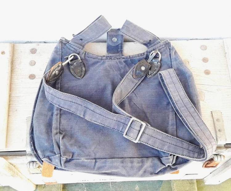 IN TELA BLU E RINFORZI IN CUOI NERO.