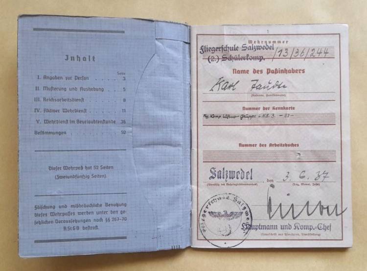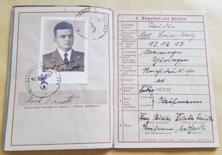 Brevetto di Volo e Libretto Militare del Sottufficiale Pilota Karl Taudte.