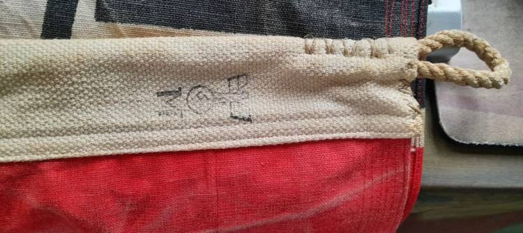 RARISSIMA BANDIERA PER SOMMERGIBILE TEDESCO DELLA II GM. MISURA cm. 75x50 E RIPORTA STAMPATO IL NOME DEL FABBRICANTE, LA ZONA DI OPERATIVITA´, IL MARCHIO DELLA KRIEGSMARINE E L´U-BOOT AL QUALE APPRTENEVA, L´ U 230. COTONE IMPERMEBILIZZATO