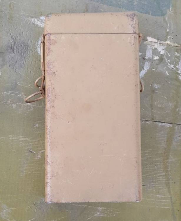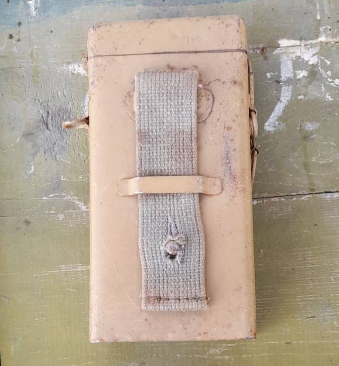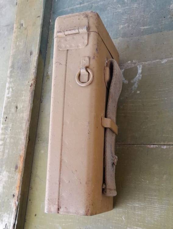 CUSTODIA IN METALLO CON VERNICIATURA GIALLO CONTINENTALE PER OTTICA zF.4. MARCATA ´jvb´ (Wessel-u. Müller, Luckenwalde, Brandenburg) CON ‘WaA 542´. CONDIZIONI MOLTO BUONE.