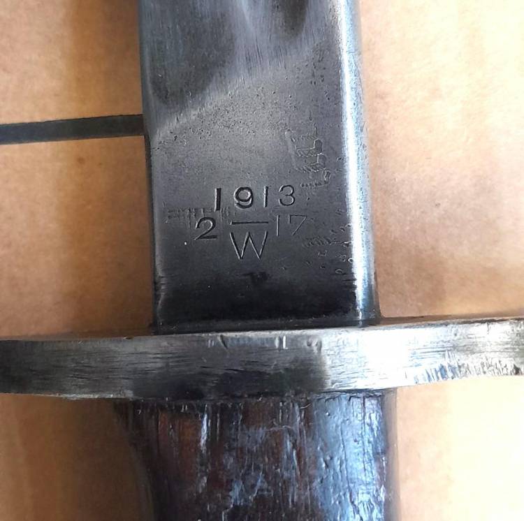BAIONETTA PER FUCILE PATTERB M.14. EŽ UNA MOD.1907 FABBRICATA NEL 1913 E TRASFORMATA IN MOD.1907/14 NEL 1917. CONDIZIONI MOLTO BUONE.