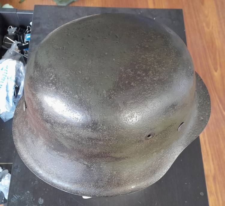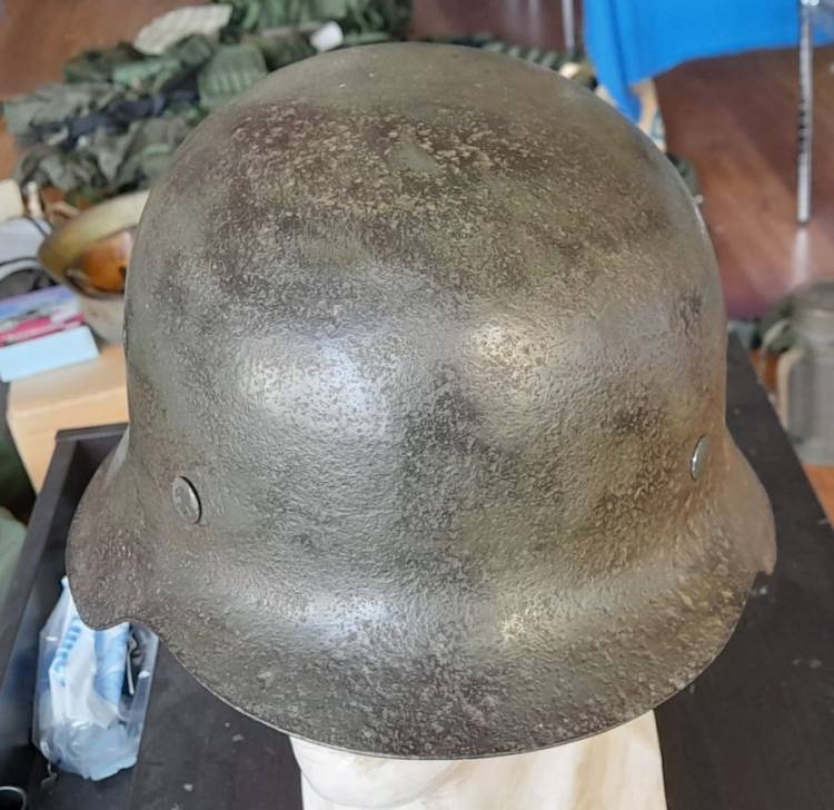 ELMETTO DELL´ESERCITO TEDESCO DELLA II GM CON COLORAZIONE VERDE. GUSCIO CON RIVETTI E FASCIONE INTERNO (´1944´). CONDIZIONI MODESTE.