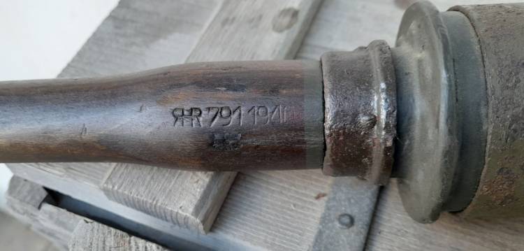 BOMBA A MANO TEDESCA DELLA II GM. IMPUGNATURA IN LEGNO CON DOPPIA CAMICIA IN METALLO. CONDIZIONI BUONE. MARCATA 1941.