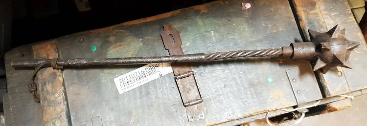 RARA MAZZA FERRATA AUSTRIACA CON IMPUGNATURA PARZIALMENTE FLETTENTE E TESTA ´A PALLA CHIODATA´ IN FUSIONE.