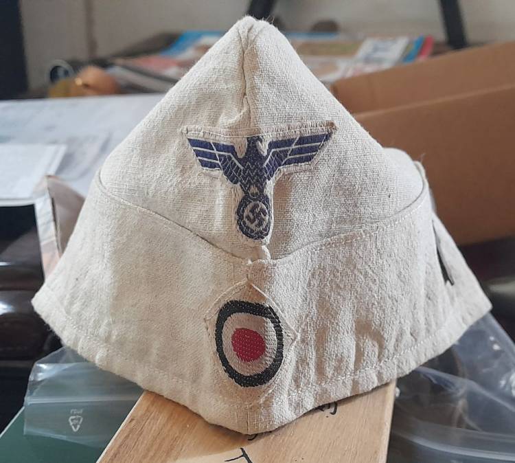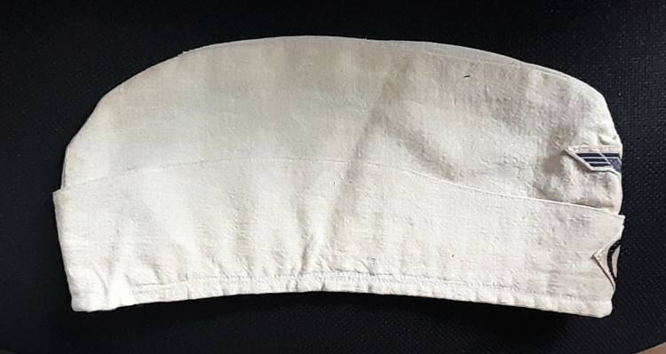 BUSTINA TROPICALE PER MARINAIO IMBARCATO (´S´) SUL SOMMERGIBILE ´U-BOOT 636´. RIPOSRTA SUL LATO LO STEMMA DEL SOMMERGIBILE, DUE TESTE DI CAVALLO, IN METALLO. ALL´INTERNO IL TIMRO DELLA MARINA E LA TARGETTA CUCITA COL NOME DEL MARINAIO.