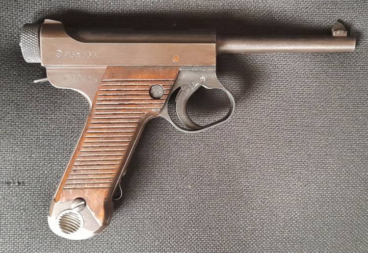 BELLA PISTOLA GIAPPONESE NAMBU MOD.14 Large Trigger. CAL.8 Nambu. ARSENALE MILITARE DI KOKOBUNJI (Chuo Kogyo Kokobunji). PRODOTTA NEL PERIODO SHOWA 19.6 (GIUGNO 1944).