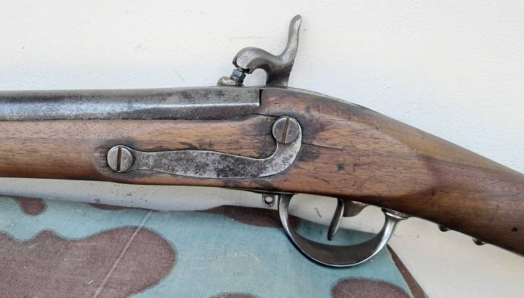 FUCILE MILITARE FRANCESE A PIETRA (PRODOTTO NELLA ´MANIFATTURA REALE DI CHATELLERAULT´) TRASFORMATO A LUMINELLO NEL 1822 E SUCCESIVAMENTE DA CACCIA (CAL.12). CONDIZIONI BUONE. CONSERVA IL MOVIMENTO DEL CANE E LO SCATTO.