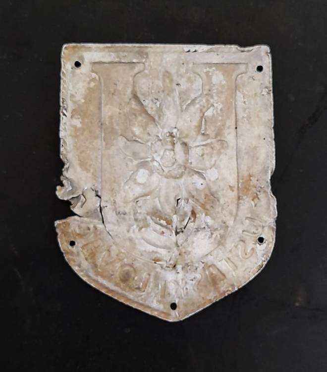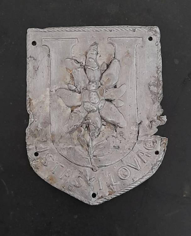 RARISSIMO SCUDETTO IN ALLUMINIO PER TRUPPE DA MONTAGNA USTASHIA. CONDIZIONI MEDIOCRI.