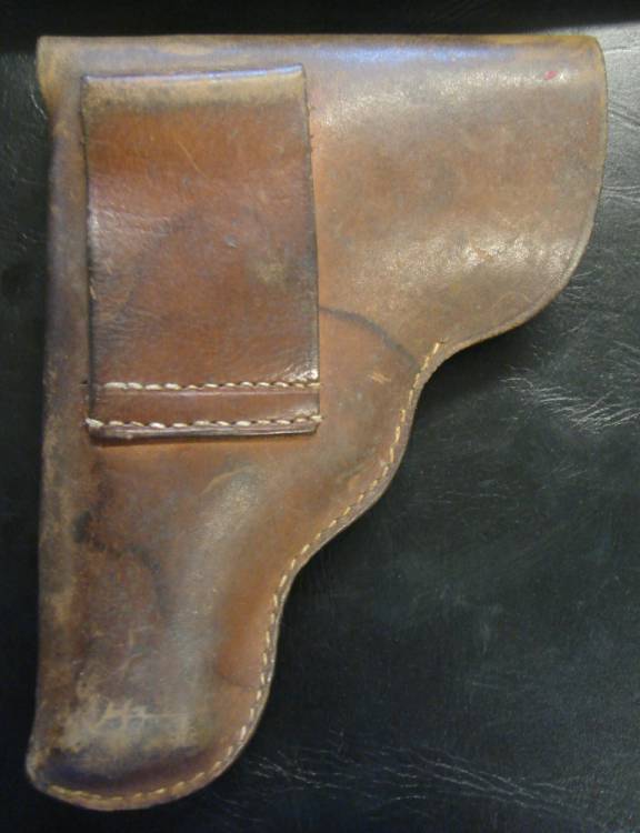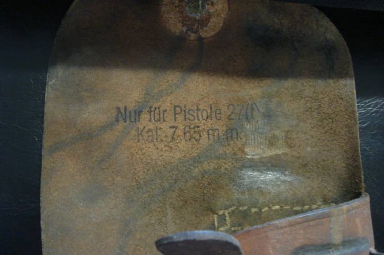 FONDINA IN CUOIO MARRONE PER PISTOLA CECOSLOVACCA CZ 27 PREDA BELLICA. DI FATTURA TEDESCA. MARCATA CON WaA E TIMBRI ALL´INTERNO "Nur fur Pistole 27(t)Kal.7,65m.m." all´interno.