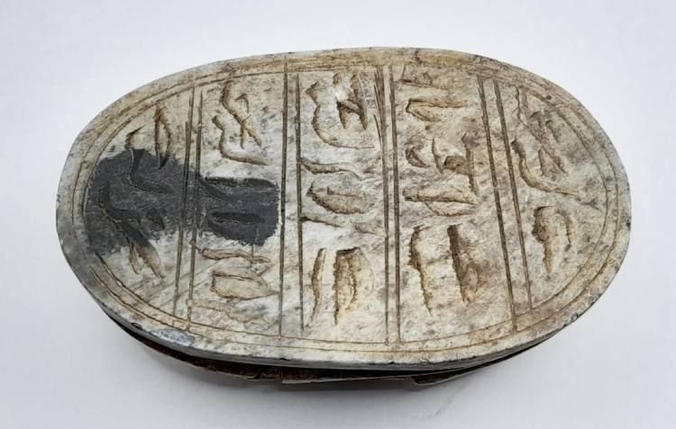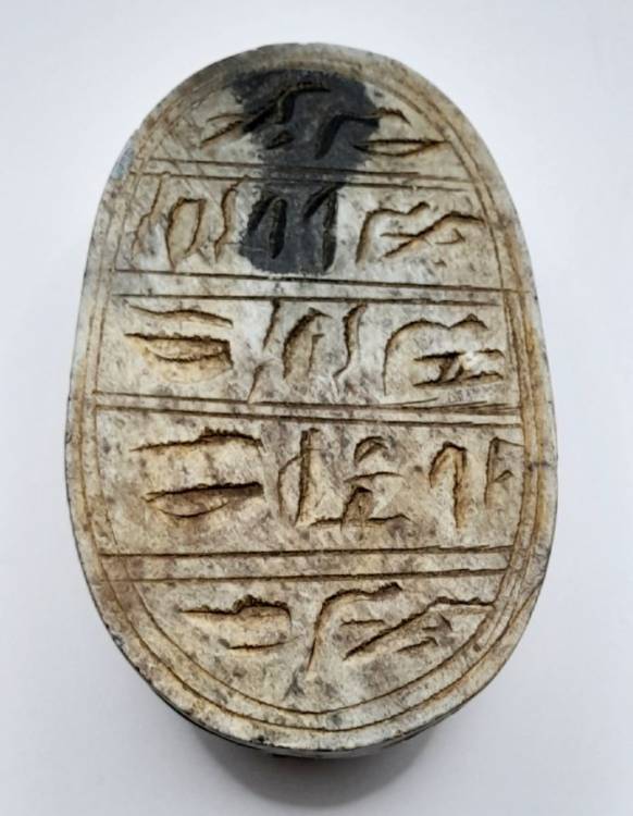 Grande Scarabeo in Pietra con Geroglifici. XVIII Dinastia, ca. 800 a.C. – 11 cm.