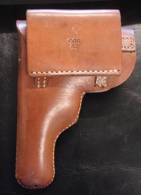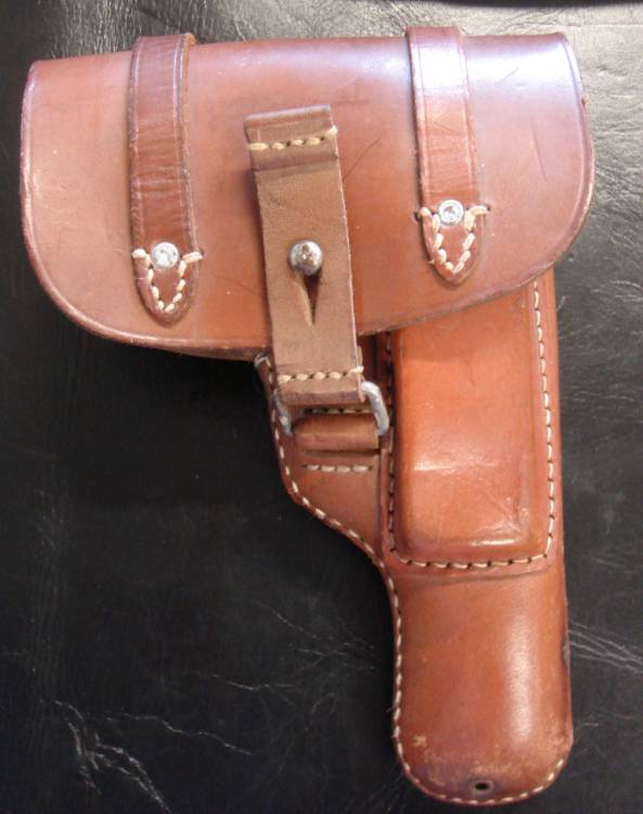 FONDINA IN CUOIO MARRONE PER PISTOLA UNGHERESE P.M.37 PREDA BELLICA. DI FATTURA TEDESCA. MARCATA"c.d.c 42". TIMBRATA ALL´INTERNO "Nur fur Pistole 37M (Ung.)Kal.7,65m.m.".