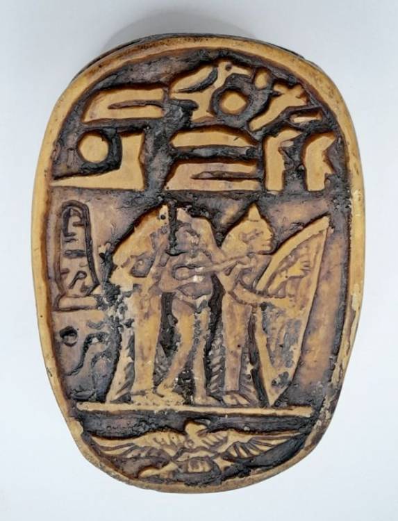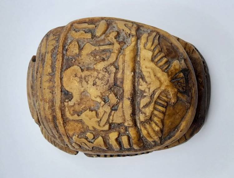 Grande Scarabeo in Pietra con Geroglifici - CALCO - XX-XXI Dinastia, ca. 1.000 a.C. – 10 cm.